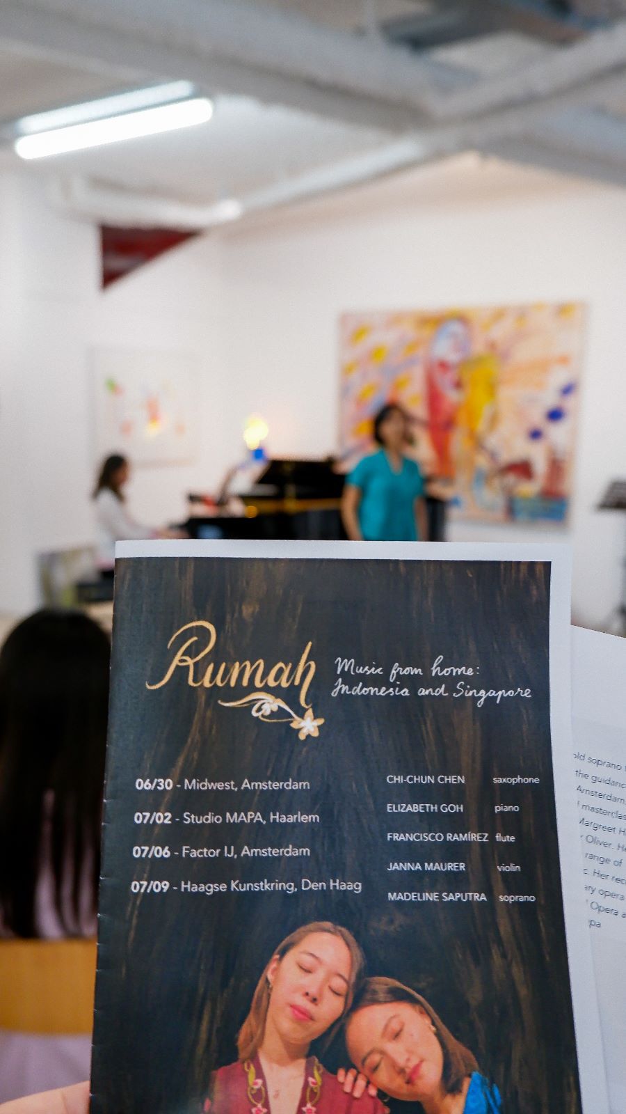 Rumah has been performed in various unique locations, including art galleries and famous venues such as Muziekgebouw aan ‘t IJ in Amsterdam, The Netherlands, and The Esplanade in Singapore, and has been featured multiple times on NPO Klassiek (Dutch classical music radio programme).